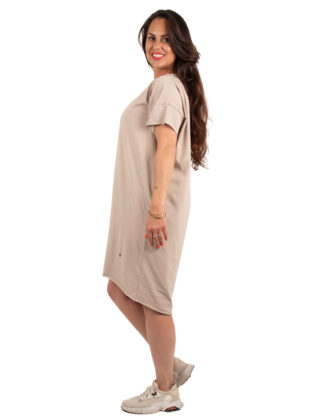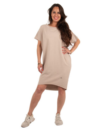 Beige ruimvallende tuniek / jurk met kort mouwtje. Dit leuke tuniek is perfect voor het voorjaar en de zomer. Verkrijgbaar in meerdere kleuren.