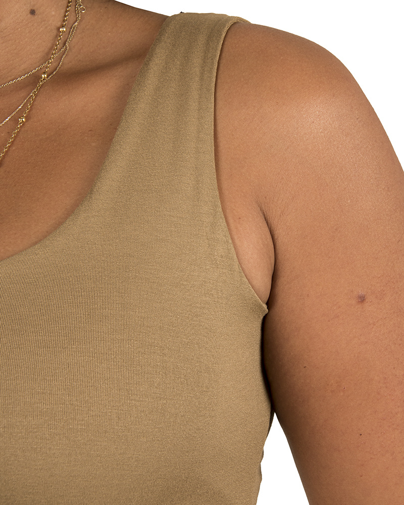 Camel basic hemdje dubbel D*versa. Mooi hemdje met gevoerd bovenstuk. Perfect te dragen onder een blazer of vestje. Bestel snel - Betaal achteraf.