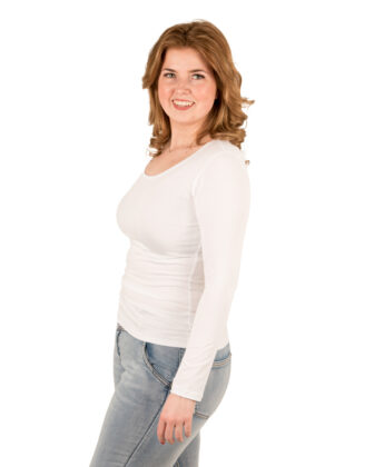 Wit shirt lange mouw van Gemma Ricceri. Basis shirt met ronde hals en lange mouw. Verkrijgbaar in meerdere kleuren.