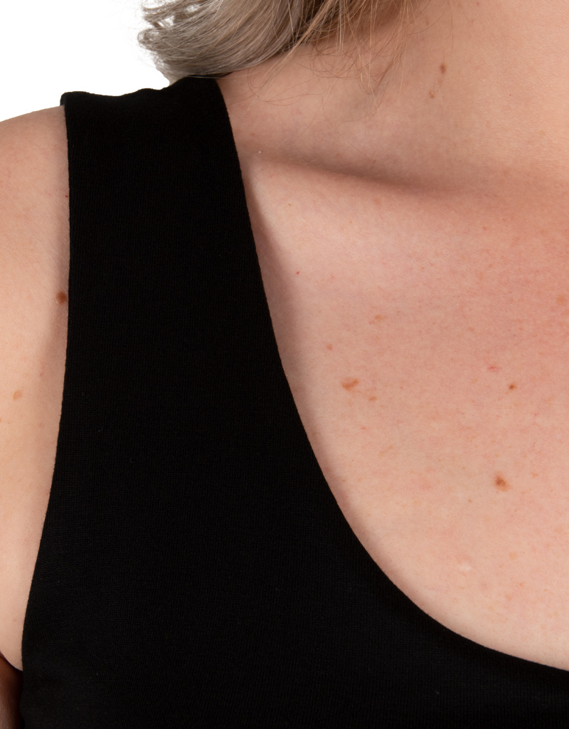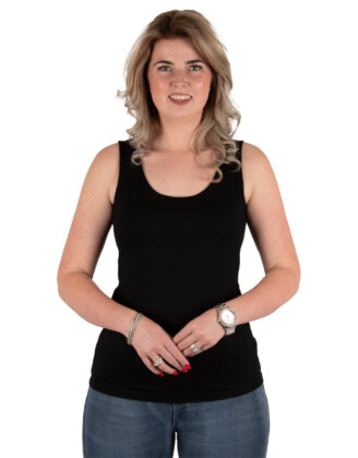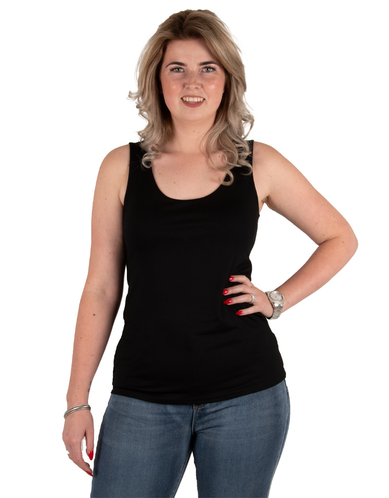 Zwart basic hemdje dubbel D*versa. Mooi hemdje met gevoerd bovenstuk. Perfect te dragen onder een blazer of vestje. Bestel snel - Betaal achteraf.