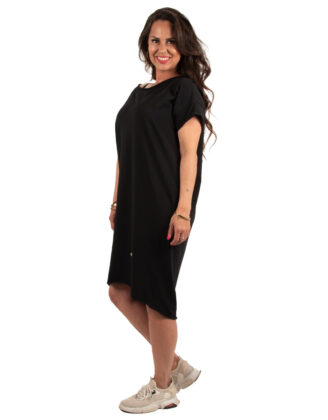Zwarte ruimvallende tuniek / jurk met kort mouwtje. Dit leuke tuniek is perfect voor het voorjaar en de zomer. Verkrijgbaar in meerdere kleuren.